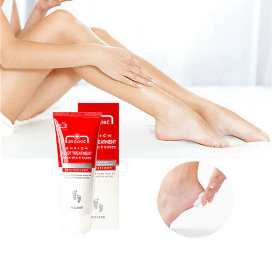 3W Clinic Enrich Foot Treatment Cream 100ml is a deeply moisturizing and restorative foot cream designed to nourish, soften, and repair rough, dry, and cracked skin on the feet and heels.