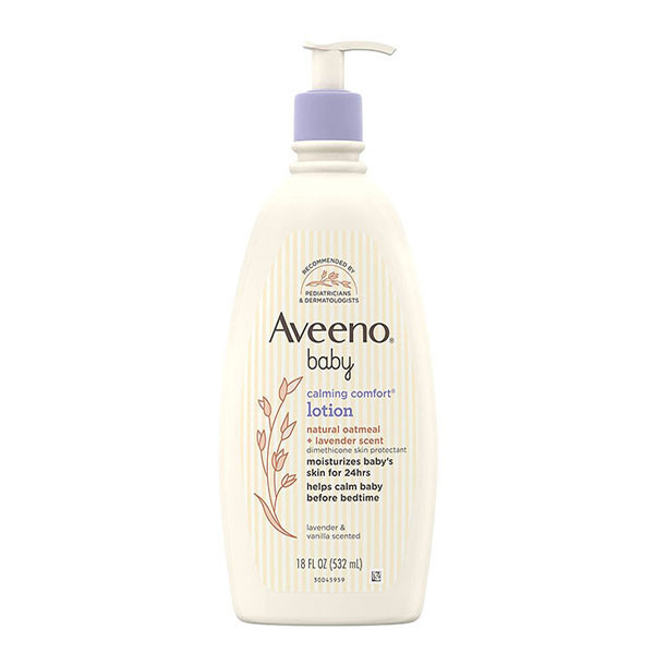 Aveeno Baby Calming Comfort Moisturizing Lotion 532ml is a non-greasy, fast-absorbing body lotion with soothing lavender and vanilla scents that provides 24-hour hydration to a baby's delicate skin.