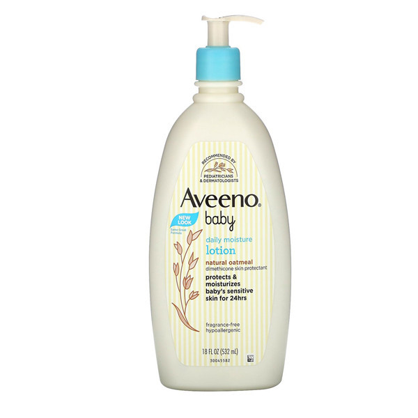 Aveeno Baby Daily Moisturizing Lotion (532ml) is a pediatrician and dermatologist-tested, hypoallergenic, and fragrance-free lotion formulated with natural colloidal oatmeal to soothe and moisturize a baby's delicate skin for a full 24 hours. It is clinically proven to improve the health of dry skin in one day, leaving it soft, smooth, and naturally healthy-looking.