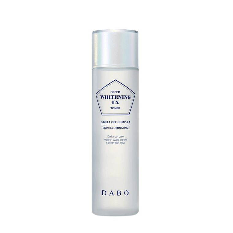 The Dabo Speed Whitening Ex Toner (160ml) is a Korean skincare product designed to brighten the complexion, even out skin tone, and hydrate the skin. It targets hyperpigmentation, dark spots, and dullness, leaving the skin refreshed and ready for subsequent skincare steps.