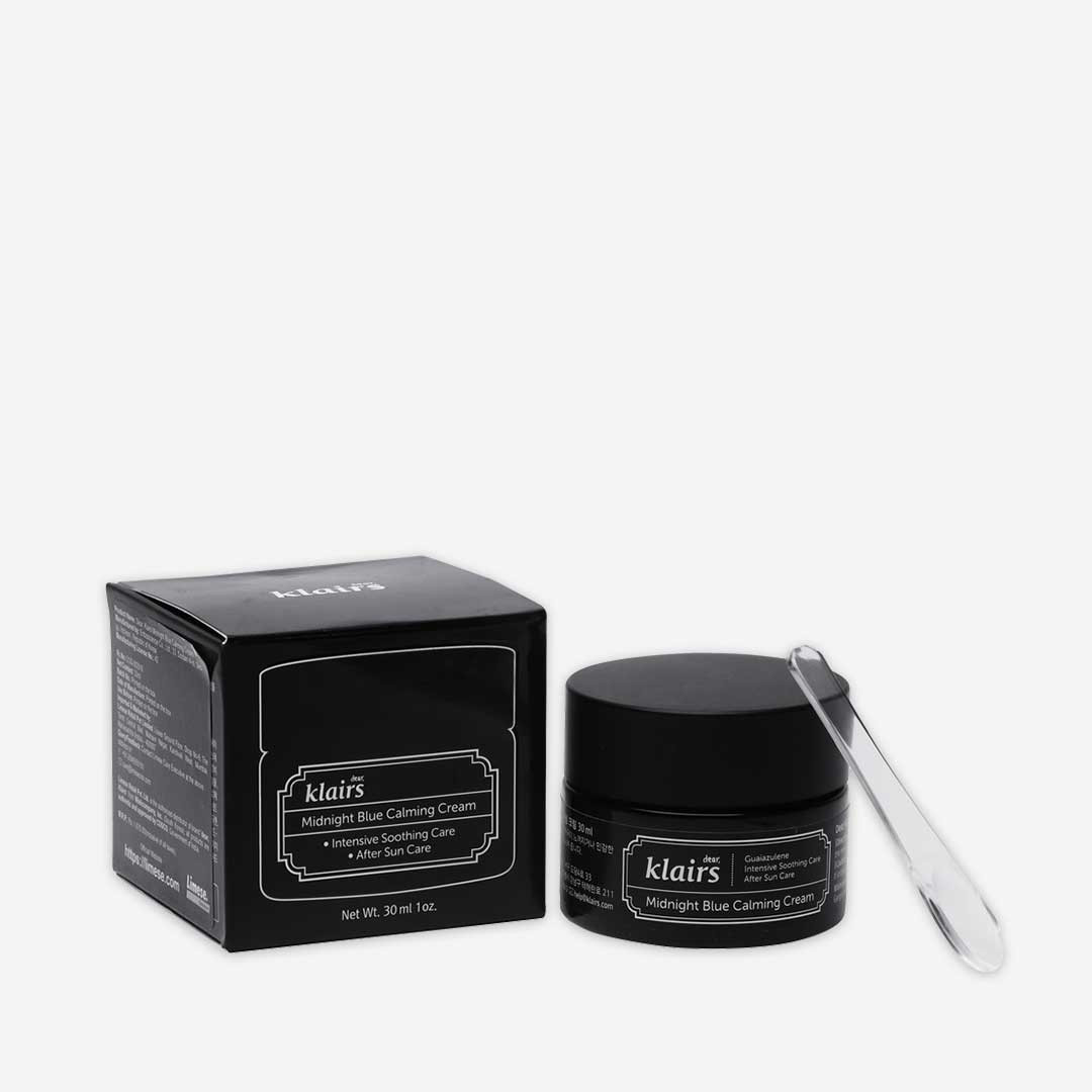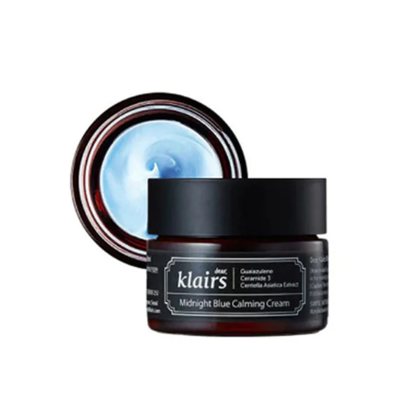 Dear, Klairs Midnight Blue Calming Cream 30ml is a gentle, soothing cream designed to rapidly calm and reduce redness in sensitive, irritated, or acne-prone skin. It features a natural blue color derived from its key ingredient, Guaiazulene, and can be used as a spot treatment or an everyday moisturizer, particularly in the evening.