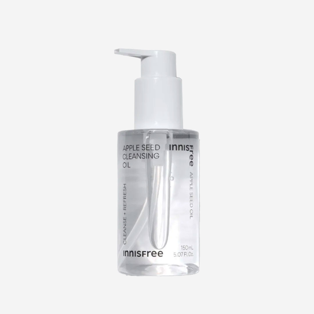 The Innisfree Apple Seed Cleansing Oil 150ml is a lightweight, non-greasy oil cleanser formulated with apple seed oil and apple fruit extract to effectively remove heavy makeup, impurities, and dead skin cells, leaving the skin feeling fresh and moisturized.
