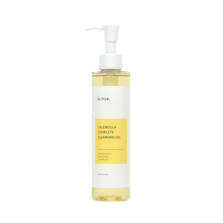 iUNIK Calendula Complete Cleansing Oil 200ml is a lightweight, all-in-one first-step cleanser in a double-cleansing routine, formulated with 94% pure plant oils to effectively remove heavy makeup, sunscreen, and impurities without stripping the skin's natural moisture barrier. It is suitable for all skin types, including sensitive and acne-prone skin.