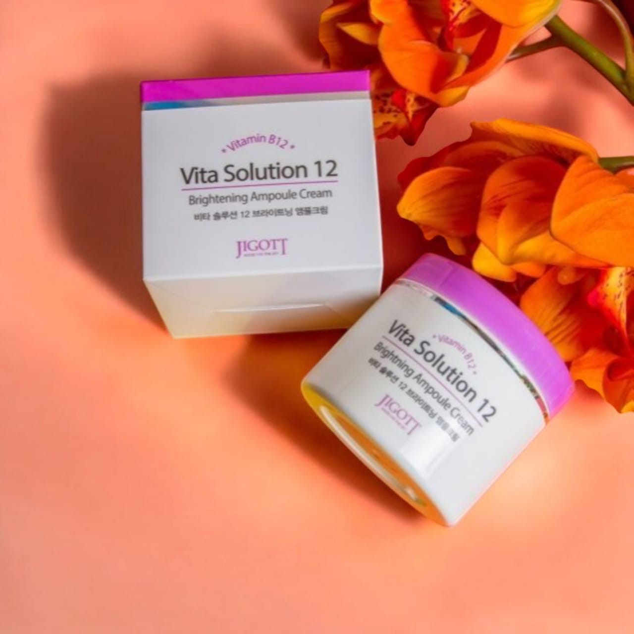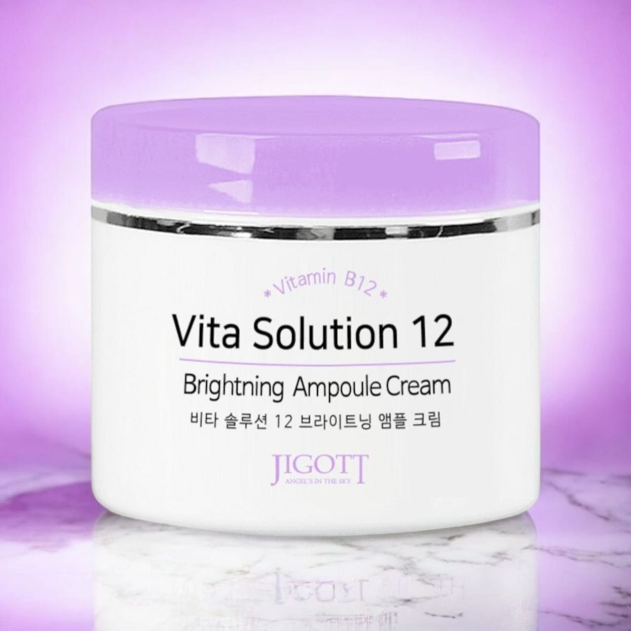 Jigott Vita Solution 12 Brightening Ampoule Cream (100ml) is a multi-functional daily moisturizer that focuses on brightening dull skin, improving elasticity, and providing deep hydration through a potent blend of 12 vitamins and various botanical extracts. It has a lightweight, non-greasy texture and is suitable for all skin types, including sensitive skin.