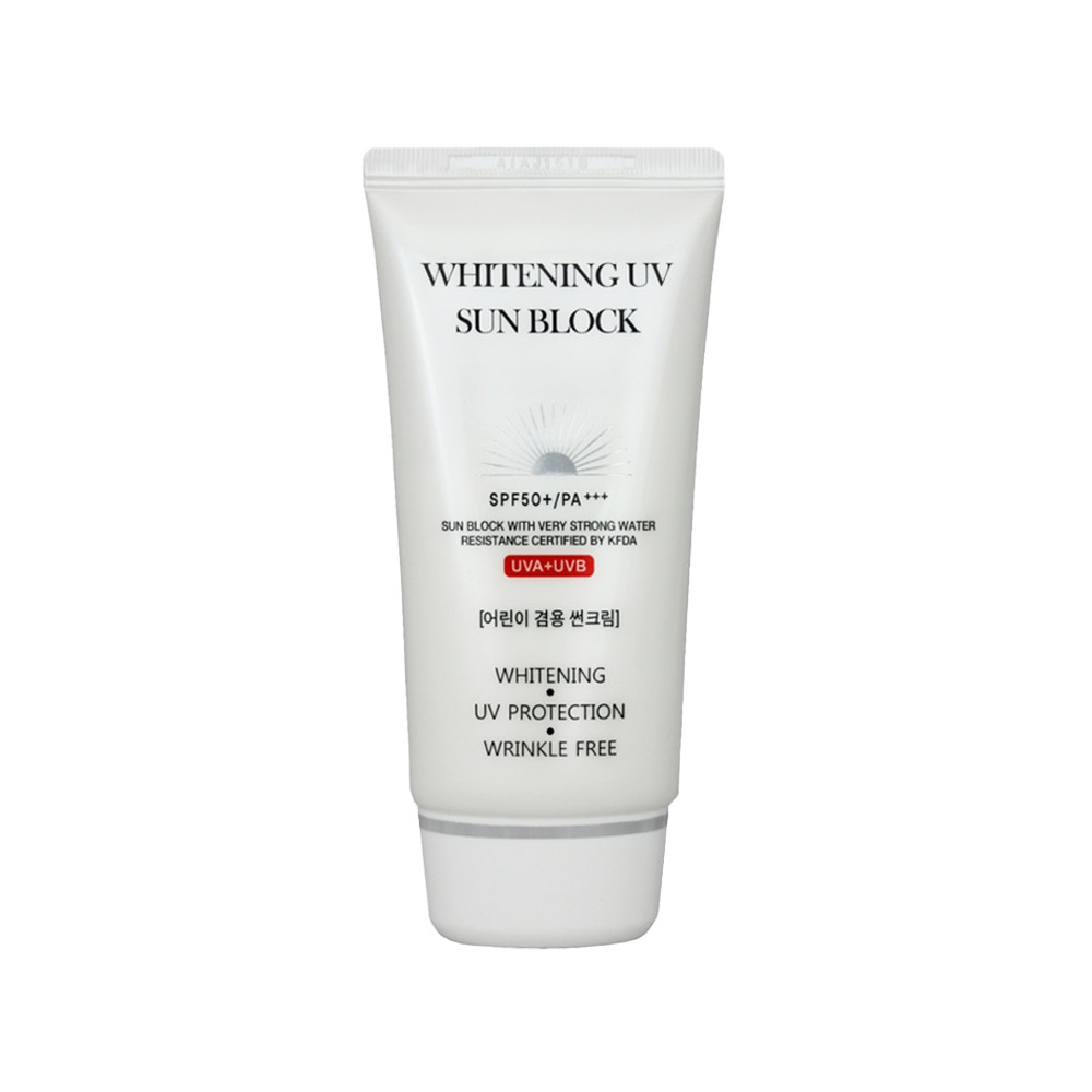 Jigott Whitening UV Sun Block Cream (70 ml) is a multi-functional Korean sunscreen that offers SPF 50+ PA+++ broad-spectrum protection against UVA and UVB rays while providing skin brightening and moisturizing benefits. It has a lightweight, non-greasy formula suitable for all skin types and can be used as a makeup base.