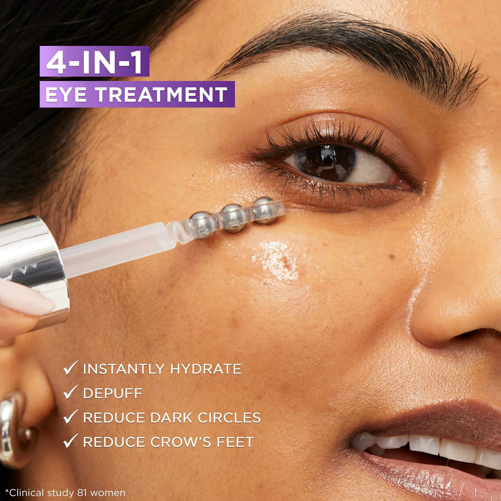 L'Oreal Paris Revitalift Caffeine Eye Serum, Replumps (20ml) is a dermatologist-validated, fragrance-free serum formulated with 1.5% pure hyaluronic acid and 1% pure caffeine to visibly brighten dark circles, reduce puffiness, and smooth eye lines. It features a unique triple-roller applicator to massage and de-puff the eye area.