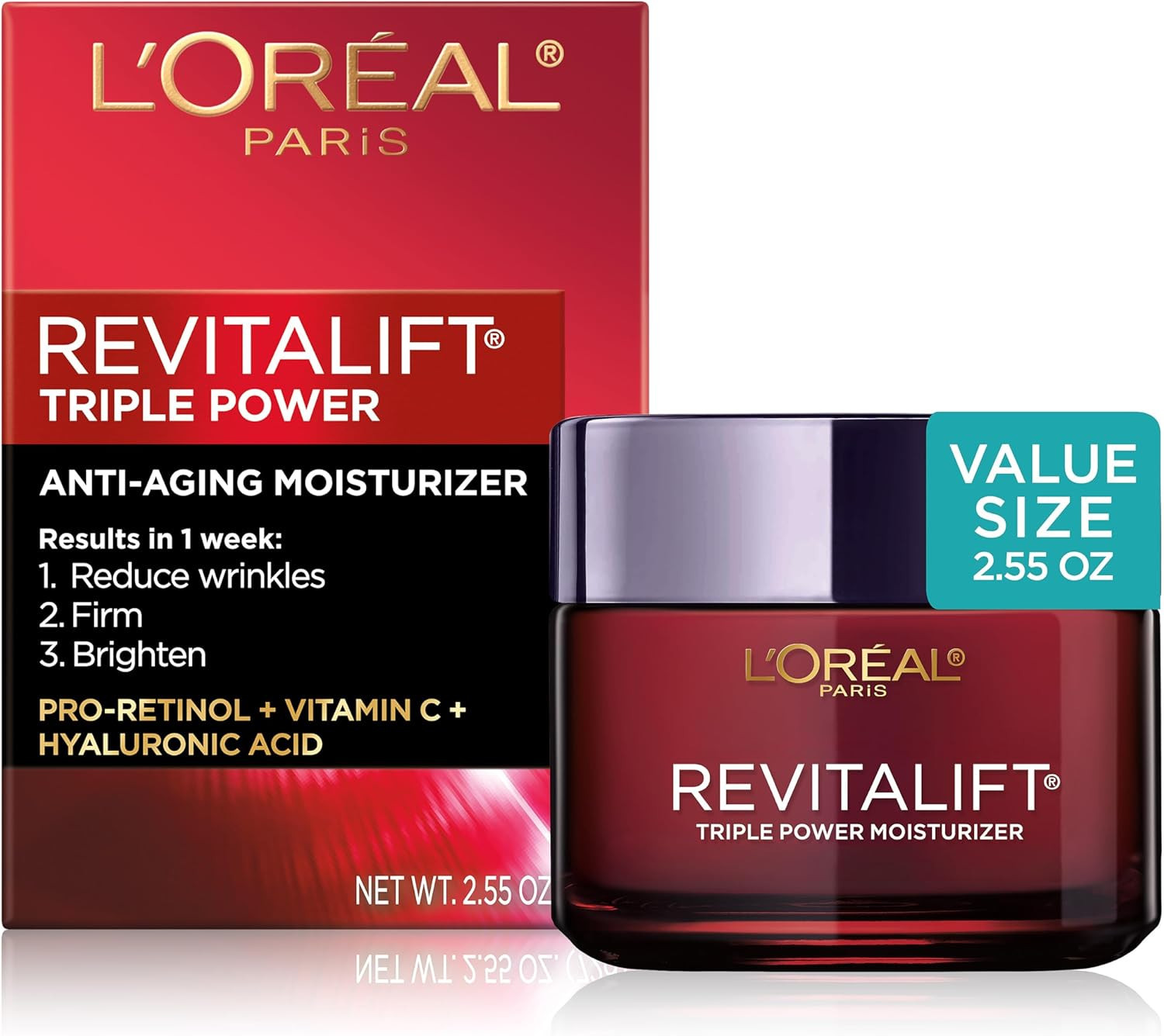L'Oréal Paris Revitalift Triple Power Anti-Aging Face Moisturizer (48g) is a powerful daily cream that addresses key signs of aging by visibly reducing wrinkles, firming the skin, and brightening the complexion.