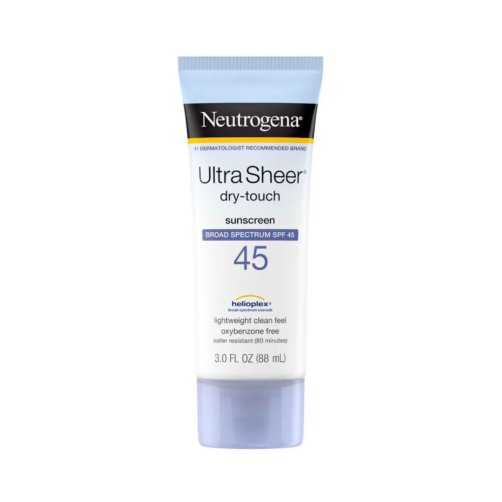 Neutrogena Ultra Sheer Dry-Touch Sunscreen Broad Spectrum SPF 45 (88ml) is a popular, high-performance daily sunblock that provides powerful protection without a heavy or greasy feel. Formulated with Helioplex® technology, it protects against both aging UVA rays and burning UVB rays with an ultra-light, matte finish.