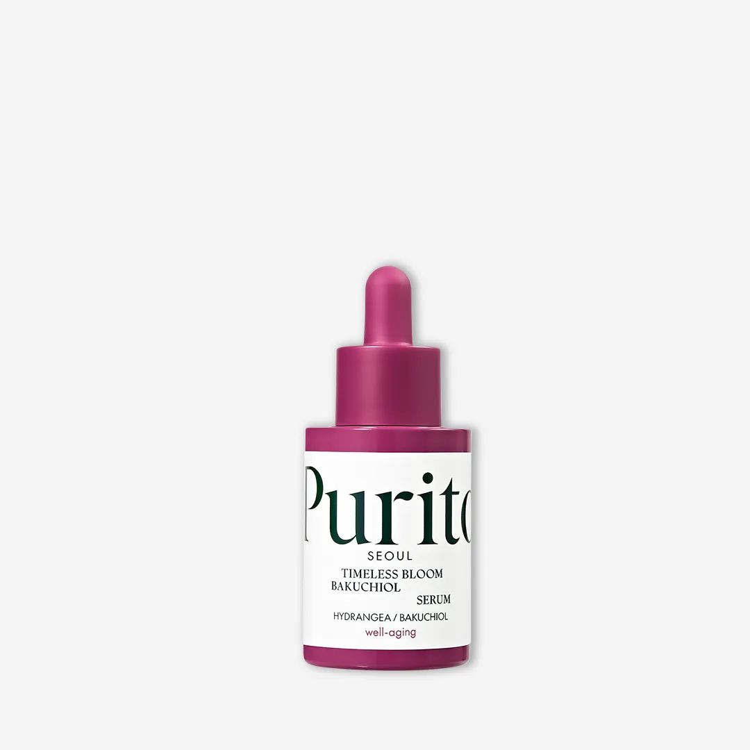The Purito Timeless Bloom Bakuchiol Serum 30ml is an anti-aging, plant-based serum that helps to reduce fine lines and wrinkles without the irritation often associated with traditional retinol products. It is vegan and cruelty-free, suitable for all skin types, including sensitive and acne-prone skin.