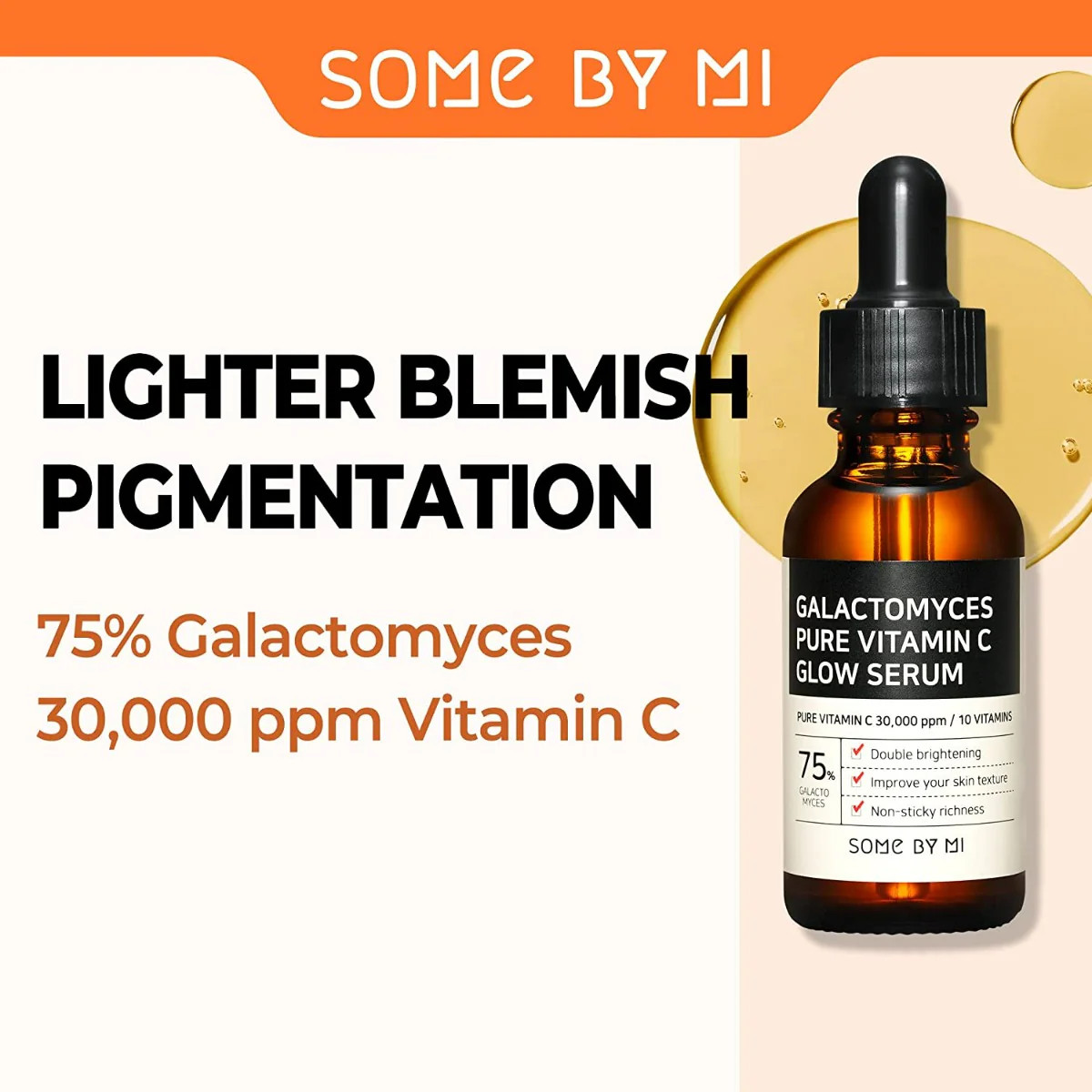 SOME BY MI Galactomyces Pure Vitamin C Glow Serum 30ml is a dual-functional brightening and anti-aging serum that helps fade dark spots, improve skin texture, and provide deep hydration for a radiant, "glass skin" glow. It is formulated to be gentle and suitable for all skin types, including sensitive skin.