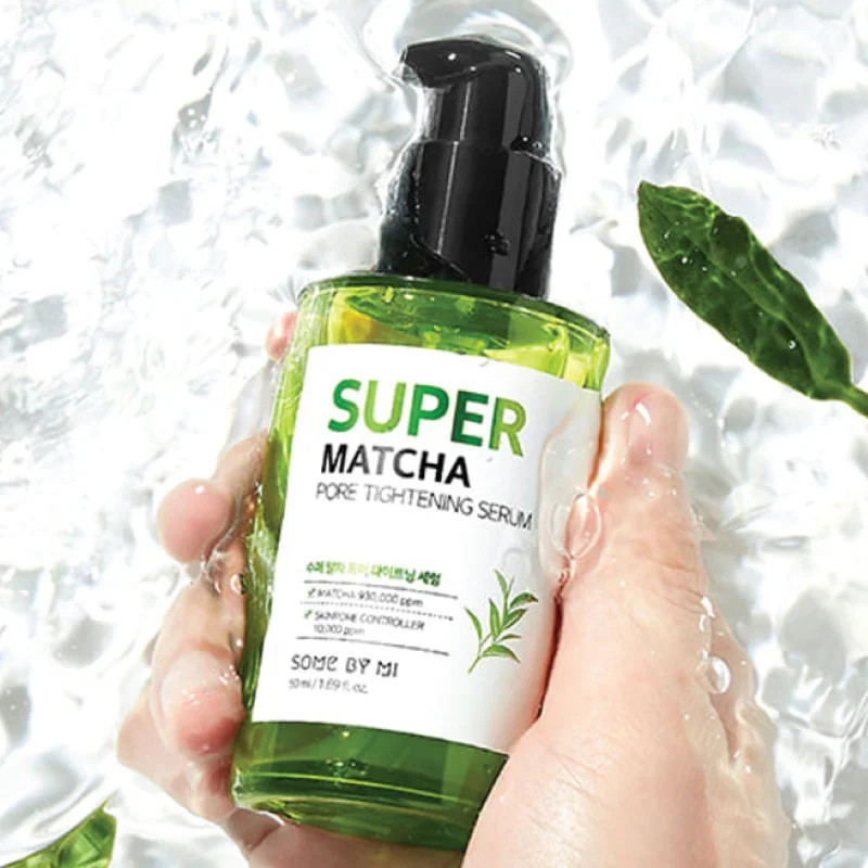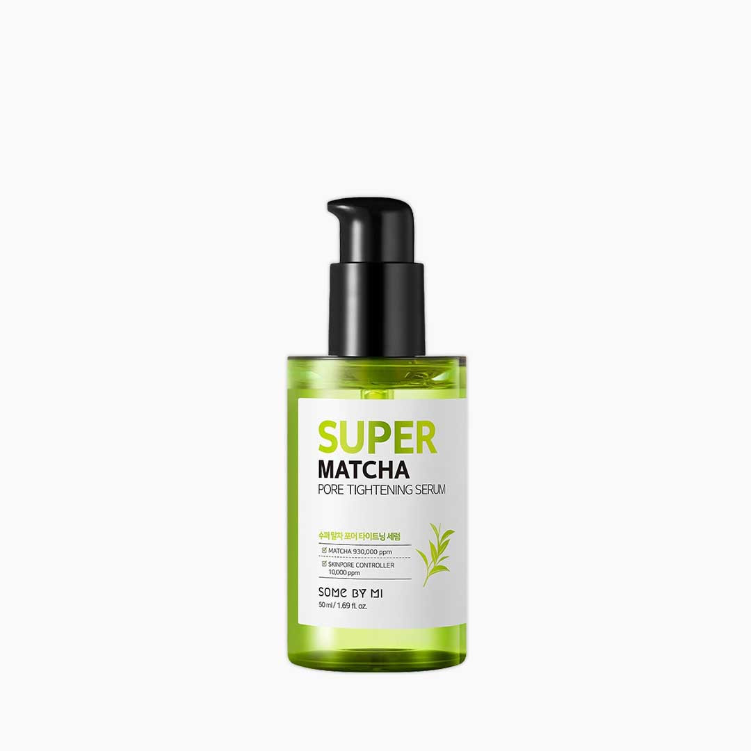 SOME BY MI Super Matcha Pore Tightening Serum 50ml is a lightweight, watery serum formulated to purify and tighten enlarged pores while controlling excess sebum and hydrating the skin for a smoother, clearer complexion.