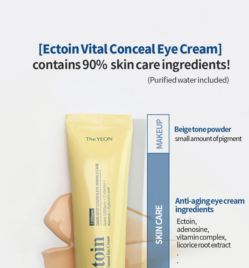 The Yeon Ectoin Vital Conceal Eye Cream 20ml is a multi-functional product that combines the benefits of a potent anti-aging eye cream with a natural, tone-up concealer for an instantly brighter and smoother eye area.