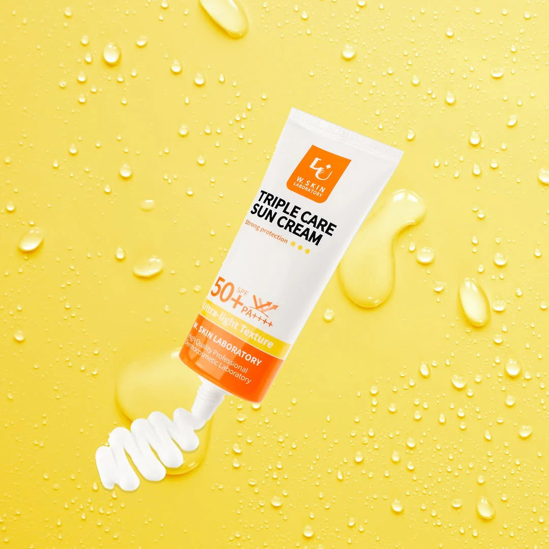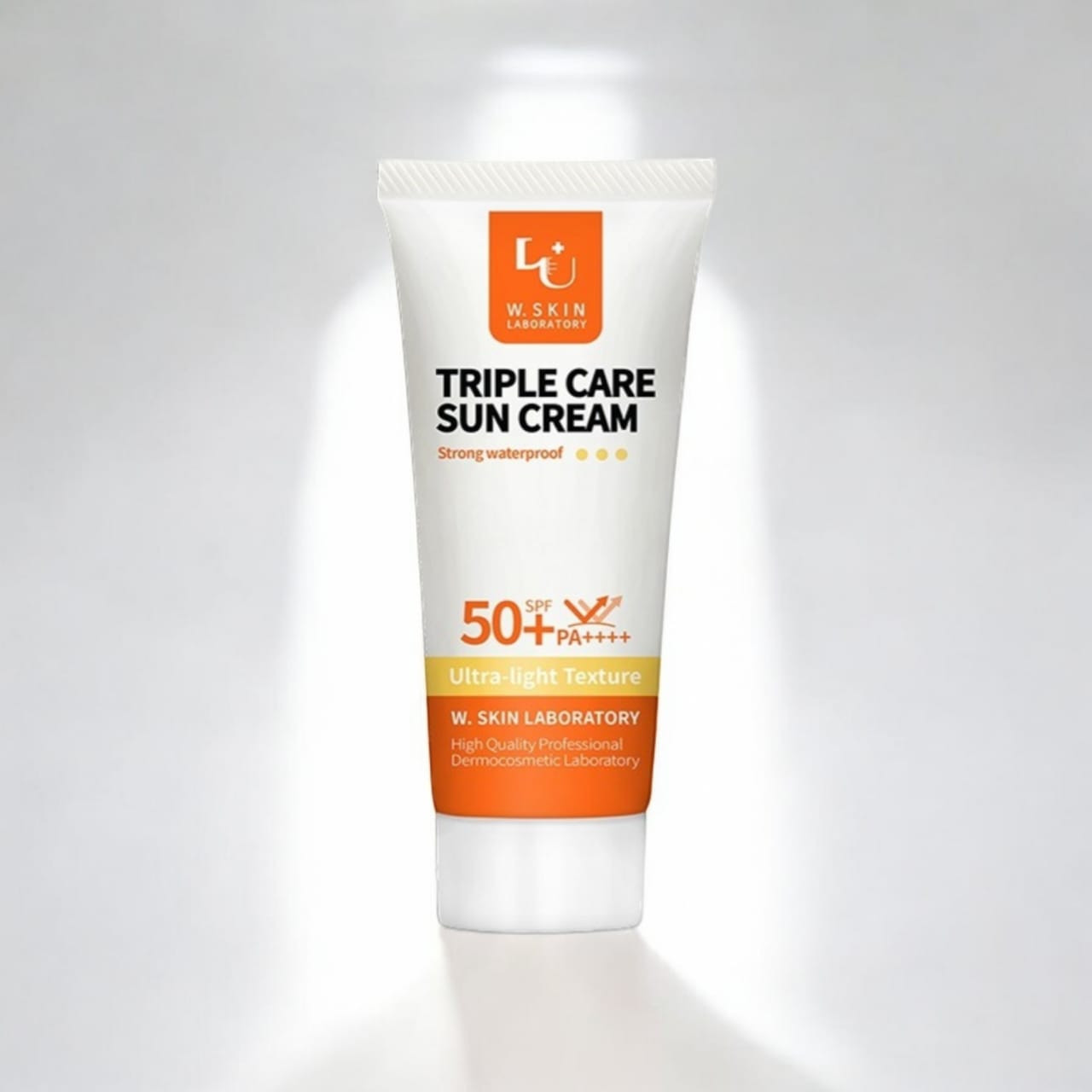 W.Skin Laboratory Triple Care Sun Cream SPF50+ PA++++ is a lightweight, hybrid sunscreen that provides superior, broad-spectrum UV protection with additional anti-aging and moisturizing benefits, and leaves no white cast. It is suitable for all skin types, including sensitive and acne-prone skin.